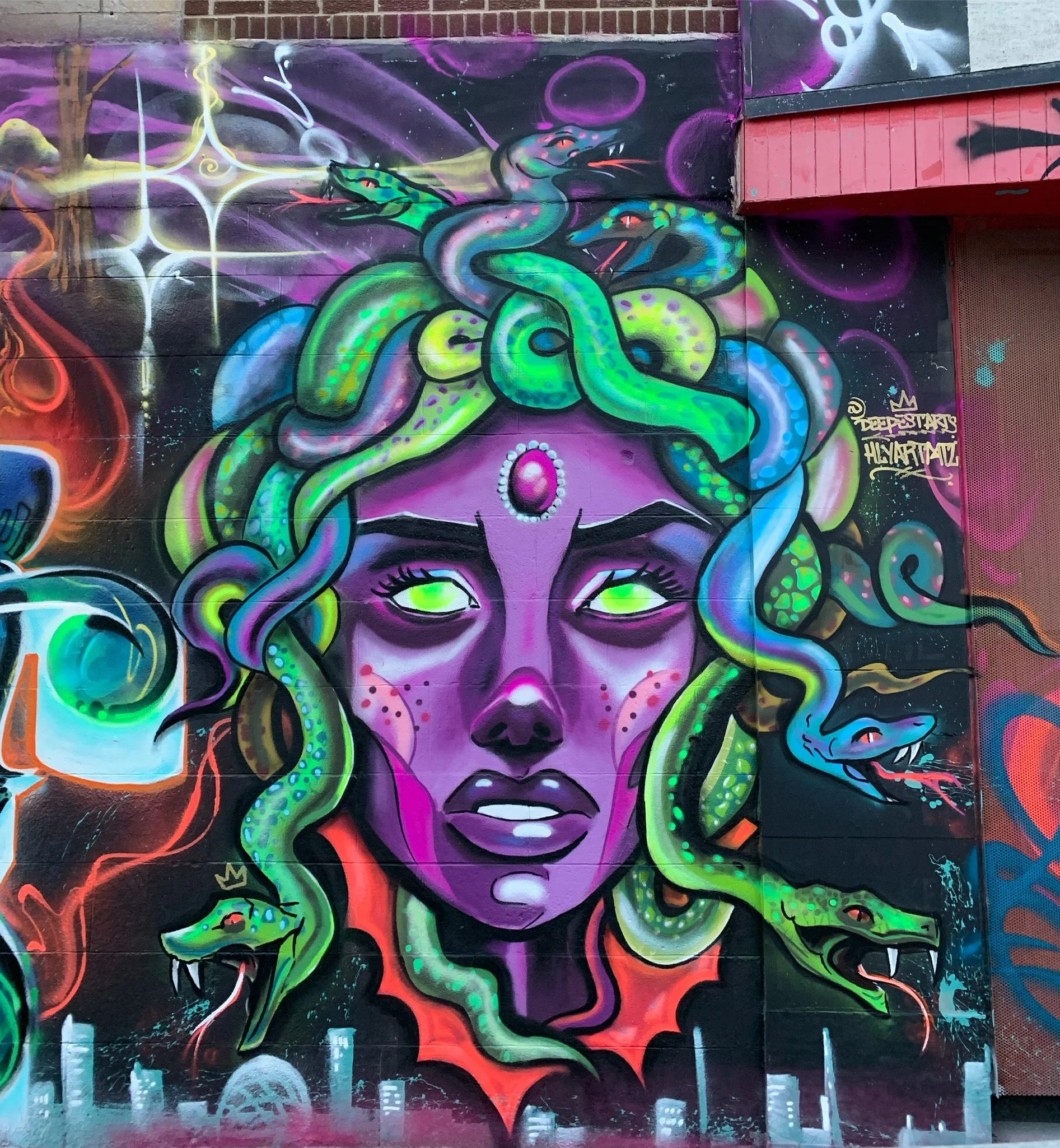 Since Medusa’s primary medium is spray paint, she has been invited to participate in several street art and graffiti festivals